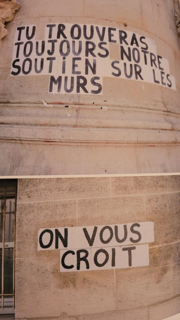 Depuis les années 2010 et le début de ce qu’on appelle aujourd’hui la quatrième vague féministe, dans tous les milieux, les femmes s’organisent pour reprendre la parole. Depuis #MeToo encore plus, comme une forme de relai entre femmes : je parle, tu parles, elles parlent. Elles sont nombreuses, militantes ou non, à prendre la parole sur les réseaux sociaux pour diffuser leurs récits et partager des analyses, en usant du hashtag comme nouvel outil de création de collectif et de soutien sororal. Dernièrement, ce sont #MeTooThéâtre, #MeTooPolitique et #DoublePeine qui ont permis de rendre visibles et audibles de nouvelles prises de parole. Les collages féministes contre les féminicides se sont répandus dans toutes les villes de France, revendiquant une prise de parole qui occupe l’espace public. Pour que les thèmes féministes soient abordés dans les journaux, de nouveaux médias aux formats diversifiés se montent : newsletters (par ex. Les Glorieuses, Règle30, Sorocité), podcasts (La Poudre, Un podcast à soi, Les couilles sur la table), magazines (La Déferlante, Women who do stuff). Les journalistes se regroupent en association avec Prenons la Une pour travailler collectivement à un meilleur traitement dans tous les médias des sujets féministes et un meilleur partage de la parole médiatique. Des collectifs féministes se montent dans de nombreux milieux professionnels et dans des structures militantes de multiples domaines pour, là aussi, revendiquer une juste place des femmes. Les marches féministes autour du 25 novembre & du 8 mars permettent de mettre en commun nos voix, au sens propre. Ça ne va pas s’arrêter de si tôt. Se regrouper est un excellent moyen de sortir de l’assignation au silence, de raconter et partager nos récits, de s’assurer d’écouter et de lire ceux des autres femmes. Se constituer comme corps politique et établir des liens de sororité importants permet de se donner la force d’intervenir à chaque situation sexiste et de proposer du soutien à celles qui subissent encore la silenciation.